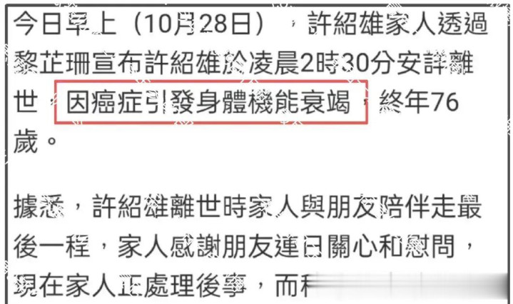 许绍雄患癌仍敬业! 今年参演9部作品, 最后一条微博还在宣传剧集